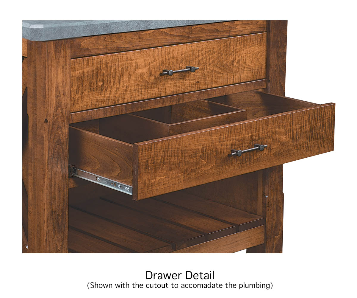 Features: • Vanity surface is not included • Top drawer is a false front • Dovetailed drawer • Full extension drawer slides