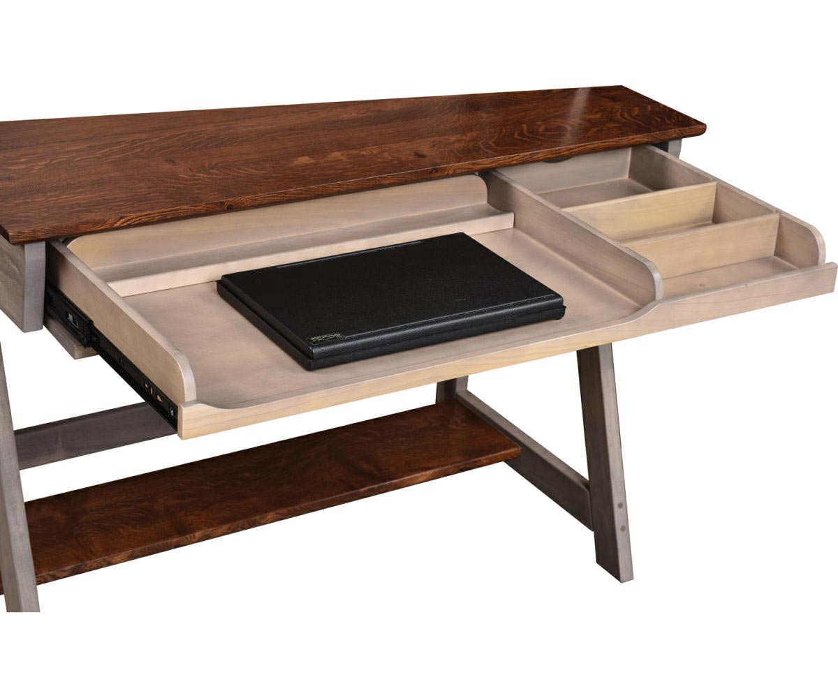 The Timberline Collection presents a fresh open look, featured in two-tone wood. With it’s striking angles, this collection would be appealing in a modern loft, a small office or even in a child’s room.
